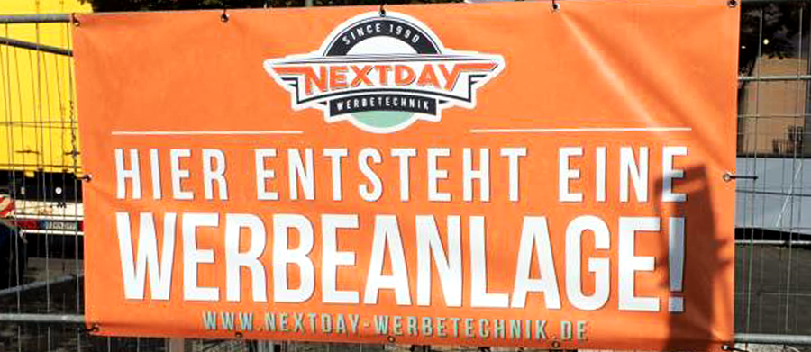Ebenso gehören Werbebanner- & Planen sowie Werbeschilder aus Kunststoff und Aluminiumverbund zum NEXTDAY24-PROGRAMM. Auf unserer computergesteuerten Fräse fertigen wir konturgeschnittene Schilder und Fassadenbuchstaben für Sie.